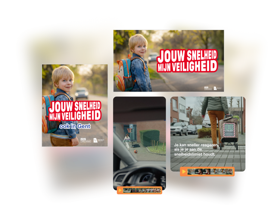 Misschien herinner je je nog dat we voor de vorige campagne gepersonaliseerd materiaal maakten met stads- en gemeentenamen. Vanaf deze campagne hebben we een tool waarmee iedereen dit nu zelf kan doen. Je kan dus een naam toevoegen op het campagnemateriaal, van je stad of gemeente, politiezone, school, chiro, bedrijf ... Zo maak je de snelheidslimiet persoonlijk en herkenbaar.