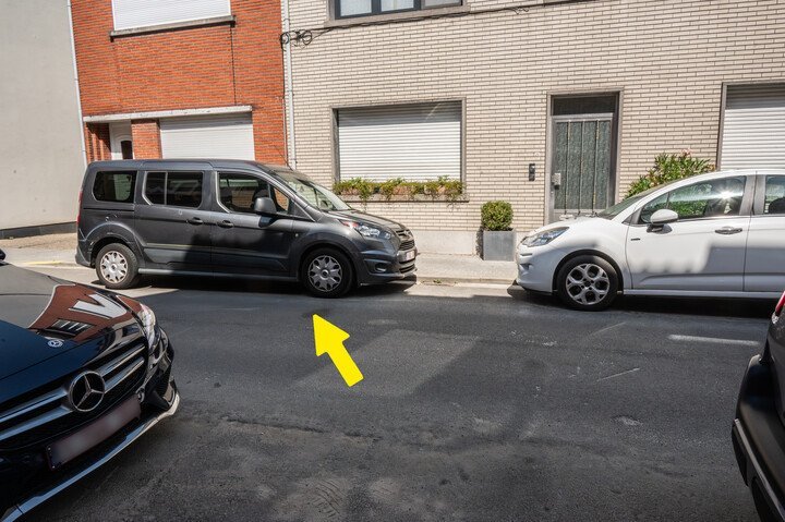 Dit is een straat met tweerichtingsverkeer. Mag je je auto op deze manier parkeren?