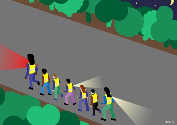 Verlichting en zichtbaarheid voor wandelaars in het donker