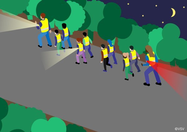 Waar moeten groepen wandelaars hun verlichting dragen?