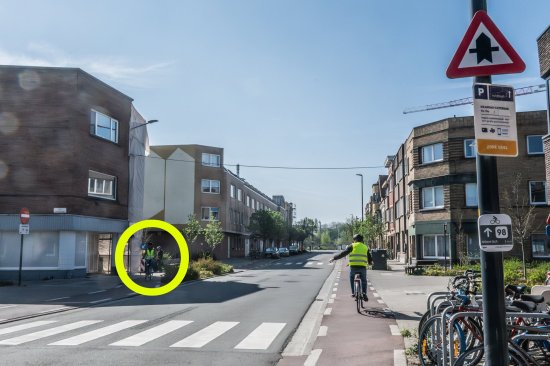 Moet de fietser die rechtsaf wil, voorrang verlenen aan de voetganger die staat te wachten aan het zebrapad?