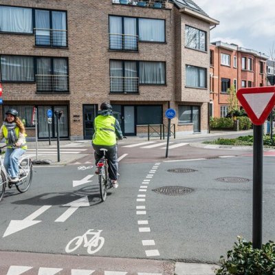 - Fietsoversteekplaatsen aan kruispunten en rotondes worden meer en meer op deze manier gemarkeerd.