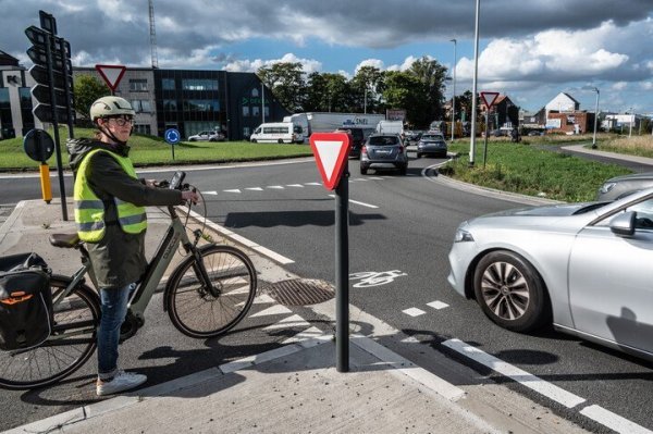 - Als fietser ben je ook bestuurder, dus je moet ook voorrang verlenen aan wie al op de rotonde rijdt